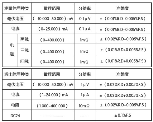 測量輸出同時使用??梢詼y量毫伏電壓、電流、電阻、熱電偶(三通道測量)、電阻(雙通道測量);可以輸出毫伏電壓、電流、電阻、模擬熱電偶、模擬熱電阻
