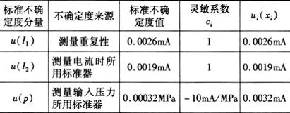 (1)由電流輸出測(cè)量重復(fù)性引入的標(biāo)準(zhǔn)不確定度分量