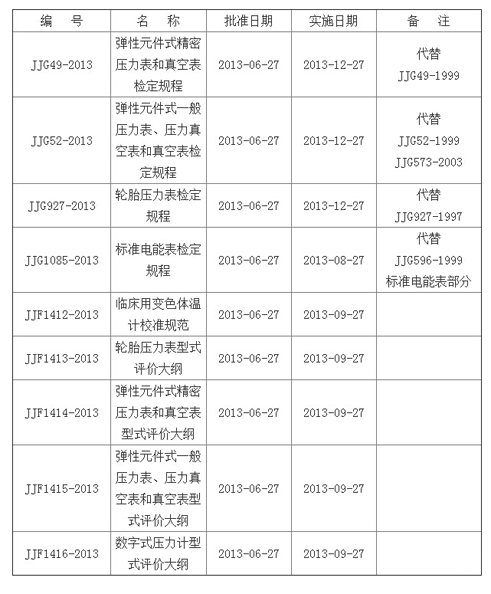 根據(jù)《中華人民共和國計量法》有關(guān)規(guī)定,國家質(zhì)量監(jiān)督檢驗檢疫總局批準JJG49-2013《彈性元件式精密壓力表和真空表》等9個國家計量技術(shù)法規(guī)發(fā)布實施。